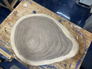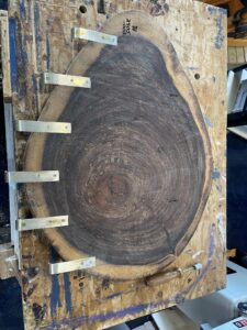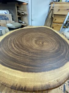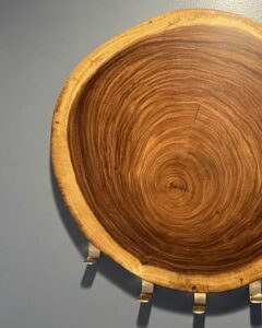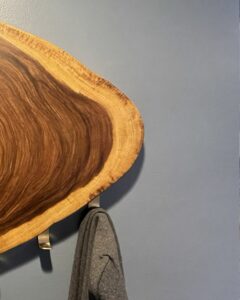 Created from a slice of monkey pod, this coat rack carries the quiet warmth and swirling grain of a tree with real history. I thinned the cookie from its original 2+ inches down to a graceful 1¼ inches, giving it a lighter, more refined profile while preserving its natural edge and organic character.