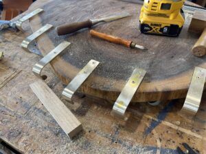 Each hook is hand‑formed from ⅛‑inch solid brass bar stock, bent and polished in the shop to create a simple, timeless hardware detail that will age into a soft, golden patina.